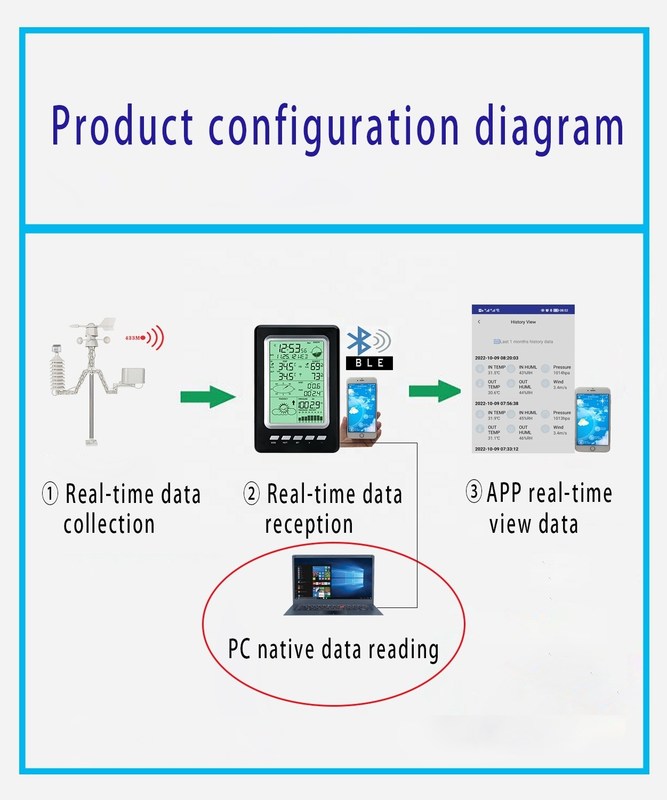 ติดต่อข้อมูลความชื้นของอุณหภูมิภายนอก ด้วยแอปพลิเคชั่นมือถือ สถานีอากาศไร้สาย 1