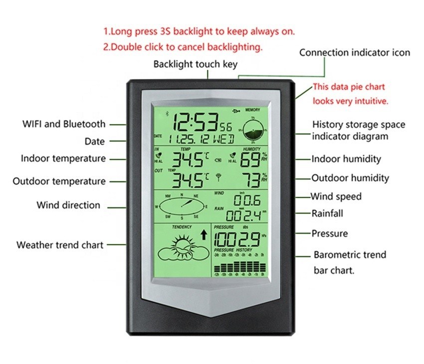 สถานีอากาศหลายฟังก์ชัน 18.9*12.5*2.7 ซม. วิดีโอ
