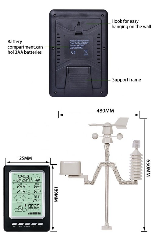 จิติป์ดิจิทัล ด้านในและภายนอก เซ็นเซอร์ สถานีอากาศ พร้อมเครื่องวัดฝนแบบไร้สาย WIFI